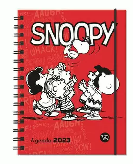 Snoopy Agenda 2023, con frases y viñetas de Snoopy y sus amigos que te acompañaran semana a semana. Dos días por página.