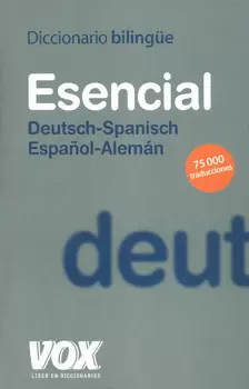 Diccionario bilingüe EsencialDeutsch-S anisch / Español-Alemán .26 500 entradasáááááááááááá 8 000 acepdones ordenadas por criterio de usoáááááááááááá 75 000 traduccionesáááááááááááá Abundantes frases hechas, locuciones y notas de uso á á á á á ááAdaptado a la actual normativa ortográfica á á á á á á Transcripción fonética en ambas lenguasá