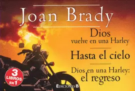 La protagonista de Dios vuelve en una Harley es Christine, una treintañera poco agraciada que está perdiendo las esperanzas de encontrar pareja. Lo que no sabe es que dios ha vuelo a la tierra montado en una Harley Davidson- para escuchar sus inquietudes y ofrecerle una serie de reglas para cambiar su vida. En los otros dos libros de este volumen, Joan Brady nos cuenta otras entrañables historias que nos vuelven a mostrar que el camino a al felicidad empieza y acaba en nosotros mismos.á