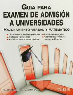El examen de razonamiento verbal y matemático mide la destreza del estudiante para razonar y resolver cualquier tipo de problema, ya sea verbal o matemático, por aplicación estratégica de conocimientos lingüÃsticos y matemáticos elementales.Esta guÃa tiene como objetivo preparar académicamente a los estudiantes que van a presentar el examen de razonamiento verbal y matemático, como parte del proceso de admisión a la universidad.La estructura de esta obra está diseñada de acuerdo con los materiales contenidos en el examen de razonamiento verbal y matemático, y esencialmente consiste en:Razonamiento Verbal.Razonamiento Matemático.Exámenes de Práctica.Respuestas, explicaciones y recomendaciones.La autora es especialista en psicologÃa educativa y tiene más de una década de experiencia en la preparación de estudiantes que presentan este tipo de examen de admisión. Seleccionó cuidadosamente conceptos, teorÃas, estrategias y explicaciones, y con el fin de hacerlos comprensibles, utilizó un lenguaje coloquial en la redacción de los temas.
