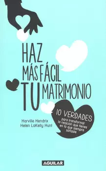 ¡Bienvenido a la Revolución de las Relaciones! Haz más fácil tu matrimonio es la guía accesible y esencial para construir un matrimonio sólido en el mundo moderno. Los autores best sellers, Harville Hendrix y Helen LaKelly Hunt, exponen en diez verdades esenciales cómo crear una relación exitosa y satisfactoria.áEscrito con humor, comprensión y honestidad, y acompañado de ilustraciones divertidas, Haz más fácil tu matrimonio es un mapa estratégico para crear una relación más sólida y satisfactoria. En cada capítulo, Harville y Helen nos explican por qué las relaciones y la intimidad se tambalean, para de inmediato proponer a las parejas ejercicios sencillos y muy efectivos que los ayudarán a superar sus diferencias, a hacer más poderosos los lazos de amor y a retomar la confianza y el erotismo en su relación.áHarville y Helen se han dedicado profesionalmente a ayudar a parejas a transformar sus matrimonios a través de la investigación, talleres, ejercicios infalibles y asesoría psicológica. Saben que el matrimonio, incluso para expertos en el tema, nunca es sencillo, ellos mismos -lo confiesan- estuvieron a punto del divorcio, pero salvaron su unión gracias a los ejercicios y recomendaciones terapéuticas que aplican a las miles de parejas que ayudan. Comparten ahora, en este libro, su amplia experiencia, tips y sugerencias para salvar las diferencias matrimoniales: ¡Si alguien duda, descúbralo!