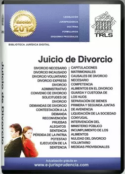 Legislación. Legislación Civil Federal, del Distrito Federal y de las principales entidades federativas (Leyes, Códigos, Reglamentos). Jurisprudencia. Jurisprudencias y Tesis Aisladas de la Suprema Corte de Justicia de la Nación y Tribunales Colegiados de Circuito de la quinta a la novena épocas, relativa a la Materia Civil y especializada en el Juicio de Divorcio. Doctrina. Abstract doctrinal y referencias bibliográficas en Materia Civil y especializada en el Juicio de Divorcio de los más prestigiados Juristas. Formularios. Escritos y Modelos del Juicio de Divorcio Necesario, Voluntario, Express, Incausado y administrativo. Diagramas Procesales. Acción de Divorcio - Causales de Divorcio - Efectos de Divorcio - Juicio de Divorcio Necesario - Liquidación de la Sociedad Conyugal - Incidentes - Recurso de Apelación - Recurso de Queja - Recurso de Revocación, Divorcio Voluntario Administrativo - Divorcio Express - Divorcio Voluntario Judicial Juntas de Avenencia - Recurso de Apelación.