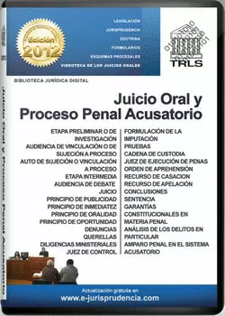 Legislación. Legislación Penal Federal, de los estados de Baja California, Chihuahua, Durango, Estado de México, Morelos, Nuevo León, Oaxaca, Veracruz y Zacatecas. (Tratados Internacionales, Convenios, leyes, códigos y reglamentos). Jurisprudencia. Jurisprudencia y tesis aisladas de la Suprema Corte de Justicia de la Nación y Tribunales Colegiados de Circuito de la quinta a la novena épocas, relativa a Materia Penal y especializada en Garantías individuales, Delitos en Particular, Procedimiento Penal, sistema acusatorio y Amparo Penal. Doctrina. Abstract doctrinal y referencias bibliográficas en Materia Penal y especializada en el Juicio Oral, de los más prestigiados Juristas. Formularios. Escritos y modelos en la etapa preliminar o de investigación, audiencia y vinculación o de sujeción a proceso, etapa intermedia, Juicio, audiencia de debate, recursos, incidentes y amparo penal. Diagramas Procesales. Diagramas procesales del Juicio Oral: Etapa Preliminar o de investigación, Audiencia de Vinculación o de Sujeción a Proceso, Etapa Intermedia, Juicio o audiencia de debate.