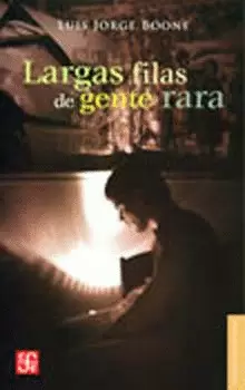Un oportunista sin imaginación encuentra la forma de hacerse de una obra literaria sin redactar una sola frase. El corrector de estilo de una editorial descubre que los asesinatos de la novela que acaba de reescribir son reales. Un escritor fantasma y una pirómana comparten un amor basado en la destrucción de libros. Un narrador en ciernes se enfrenta a un bloqueo y a la ominosa pero innegable percepción de que el mundo es un lugar insano. Los protagonistas de estos cuentos habitan los alrededores de la escritura sin aventurarse en el misterio de la creación: viven sus efectos colaterales, medran en dinámicas escasamente relacionadas con la literatura, pero que estimulan en ellos la fantasía de encarnar un destino sublime. Enamorados de una ilusión y no de los retos del oficio, se alimentan de glorias pasadas, de utopías ajenas, de ficciones inverosímiles. Desde temprano, Luis Jorge Boone se situó como un autor de notable madurez, su estilo, dúctil y certero, sabe retratar los ámbitos del realismo, la fantasía, el humor y la melancolía. Viaje por el terrenal calvario que entraña la escritura, o su ausencia, Largas filas de gente rara pasa por alto el prestigio del escritor como espíritu elevado para mirarlo tal como es: un ser frágil y a veces desencantado, presa de instintos y temores, con sus propias luces y oscuridades, su parte trágica pero también su parte cómica.