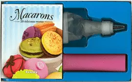 ¡Atréveteá hacer tus propios macarons! Su delicado aspecto, colorido y sabor excepcional hacen de estos pastelitos un verdadero lujo para el paladar.áLa claridad con que están explicados los ingredientes, las medidas, materiales y forma de elaboración te dejan sin escusas para no intentarlo.áPara comenzar, además del libro de recetas, te ofrecemos dos utensilios especiales: una manga pastelera y un tapete de silicona para macarons.