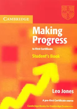 Makíng Progress to Fírst Certíficate is a course leading students up to the level required to begin a First Certificate examdirected course, such as New Progress to First Certíficate. It introduces the skills needed for each paper of the exam, and begins to familiarise students with the sort of tasks they will encounter in it, as well as providing an entertaining and worthwhile course for anyone who simply needs to make progress at this level.
