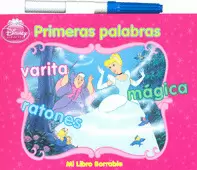 ¡Blanca Nieves, Cenicienta, la bella Durmiente, Ariel, Bella, Jasmín y Mulán ayudarán a su Princesita a prepararse para la escuela con este libro borrable de primeras palabras!
