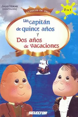 En estos Clásicos de oro te presentamos dos obras de la literatura universal: Un capitán de quince años y Dos años de vacaciones. Un capitán de quince años narra la historia de Dick Sand, un pequeño capitán que tomó el mando de su barco luego de que su padre adoptivo, el señor Weldon, se ahogara en el mar. La señora Weldon, su pequeño hijo Jack y Negoro, además de un grupo de cinco negros y su perro Dingo vivirán un sinfín de aventuras que te encantarán. Dos años de vacaciones es una extraordinaria historia de un grupo de niños del Colegio Chairman, de Nueva Zelanda, que recorrerán el mar de Europa durante las vacaciones como premio a su desempeño escolar. Sin embargo, se perderán y llegarán a una isla donde vivirán grandes aventuras. Finalmente, aprenderán a ser buenos compañeros, menos egoístas y a trabajar unidos.