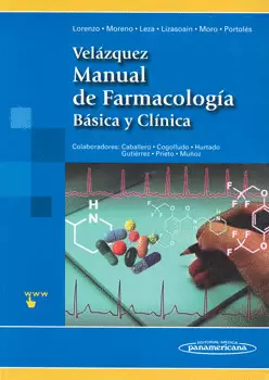 Velázquez. Fundamentos de Farmacología es un compendio de la 18a edición del clásico Velázquez. Farmacología Básica y Clínica, uno de los tratados más antiguos de Europa en su área, publicado por primera vez hace más de ocho décadas. El objetivo de esta nueva obra es proporcionar al lector un acceso rápido a la información más importante y de un modo más práctico. Sus características más destacables son: o Obra adaptada para estudiantes de grado de ciencias biomédicas conforme al nuevo EspacioEuropeo de Educación Superior.o Dividida en dos grandes partes, Farmacología Básica, que incluye 5 secciones: Principios generales; Farmacología de sistemas; Autacoides, inflamación y respuesta inmunológica; Quimioterapia antiinfecciosa y antitumoral y, Miscelánea. Y una segunda parte, dedicada a la Farmacología Clínica. o Estructura uniforme para todos los capítulos: descripción de los contenidos al inicio de cada capítulo; llamadas de atención, "Recuerda", que remiten a cuestiones que el alumno debe conocer; textos destacados y recomendaciones; resumen al final de cada capítulo; preguntas de autoevaluación para el alumno, y vinculación de cada capítulo con los correspondientes de la obra principal, Velázquez. Farmacología básica y clínica, para ampliar conocimientos. o El libro posee un sitio web complementario con un banco de preguntas de autoevaluación y enlaces de interés, útiles para los estudiantes y acceso a todas las imágenes del libro, solo para docentes. Velázquez. Fundamentos de Farmacología es un texto que sirve de consulta y apoyo para profesionales de Ciencias de la Salud, pero sobre todo es útil para estudiantes de Farmacología Humana de los numerosos grados en los que se imparte esta asignatura, como Medicina, Farmacia, Enfermería, Odontología, Podología, Fisioterapia, Nutrición y Psicología, entre otros. Con este fin, se han tomado como referencia los aspectos comunes de la asignatura en todos estos grados, aunando lo fundamental de sus programas, lo que ha dado como resultado un texto de interés, informativo y riguroso, con un vocabulario minuciosamente revisado para conseguir un alto nivel de comprensión para cualquier lector hispanoparlante.